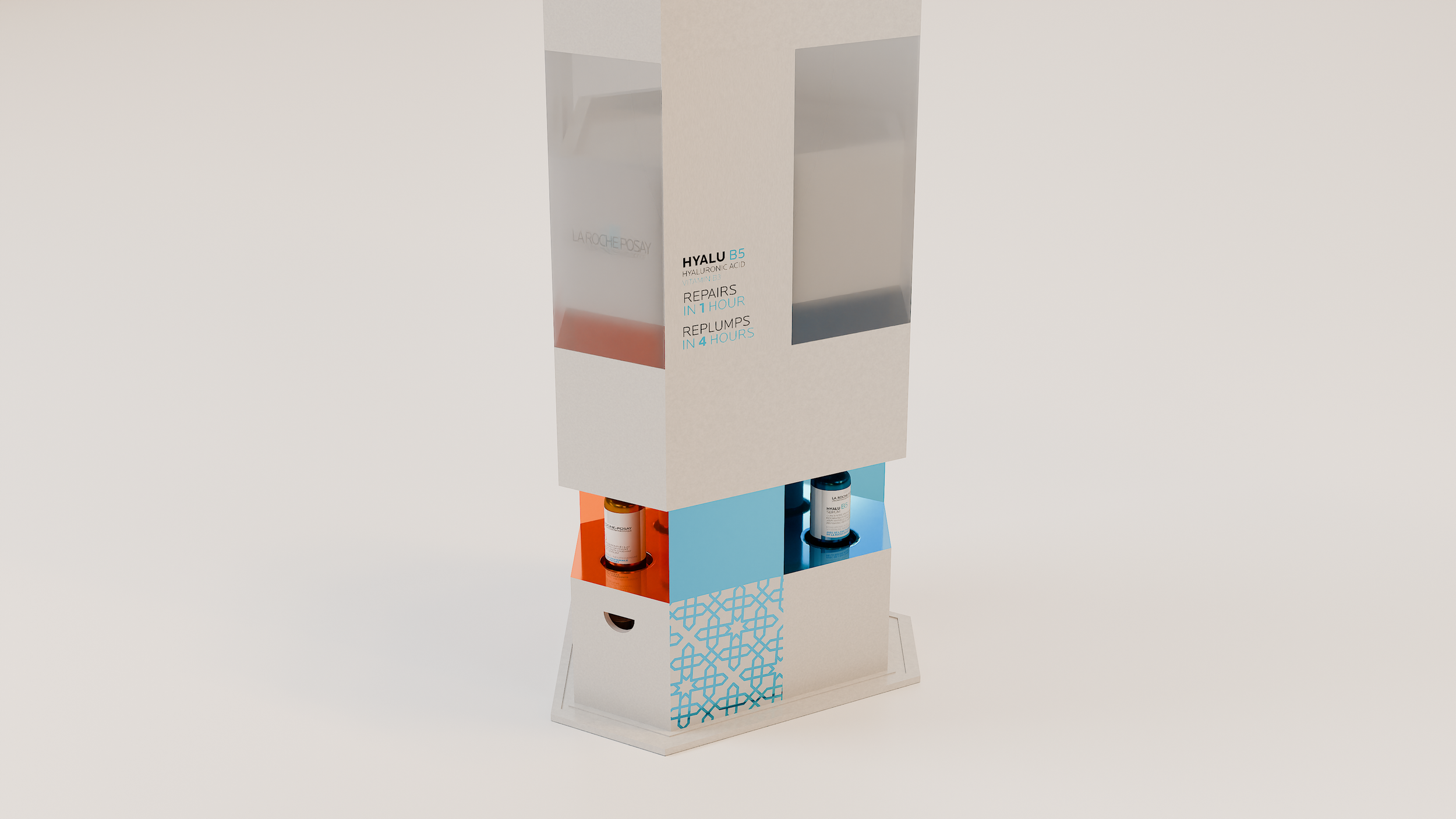 This direction revolves around a modern twist on the traditional lantern. Each color-coded side holds a La Roche Posay serum. After removing the serums, the box transforms into a lantern, perfect for battery-operated tea light candles, creating a serene Ramadan ambiance.