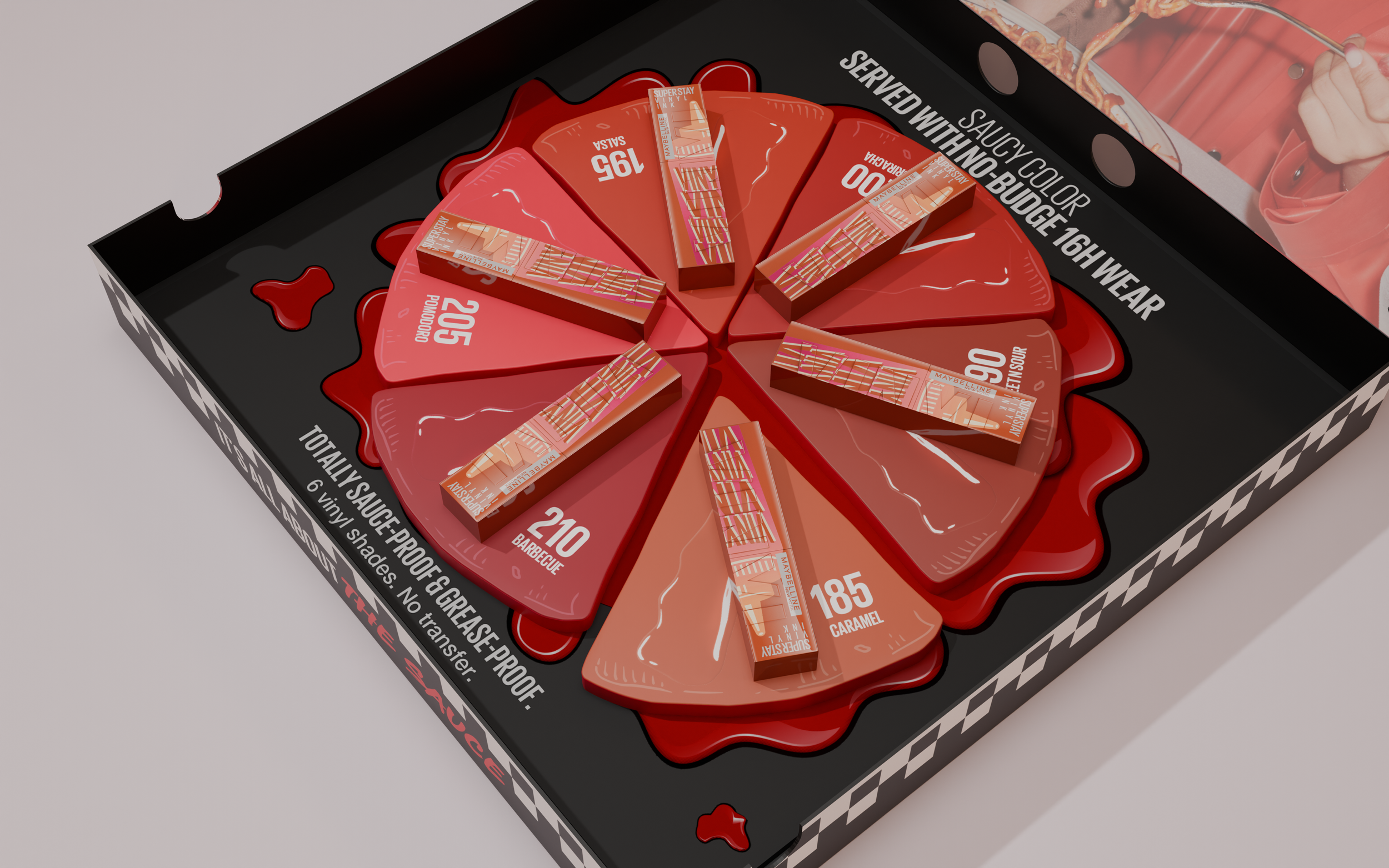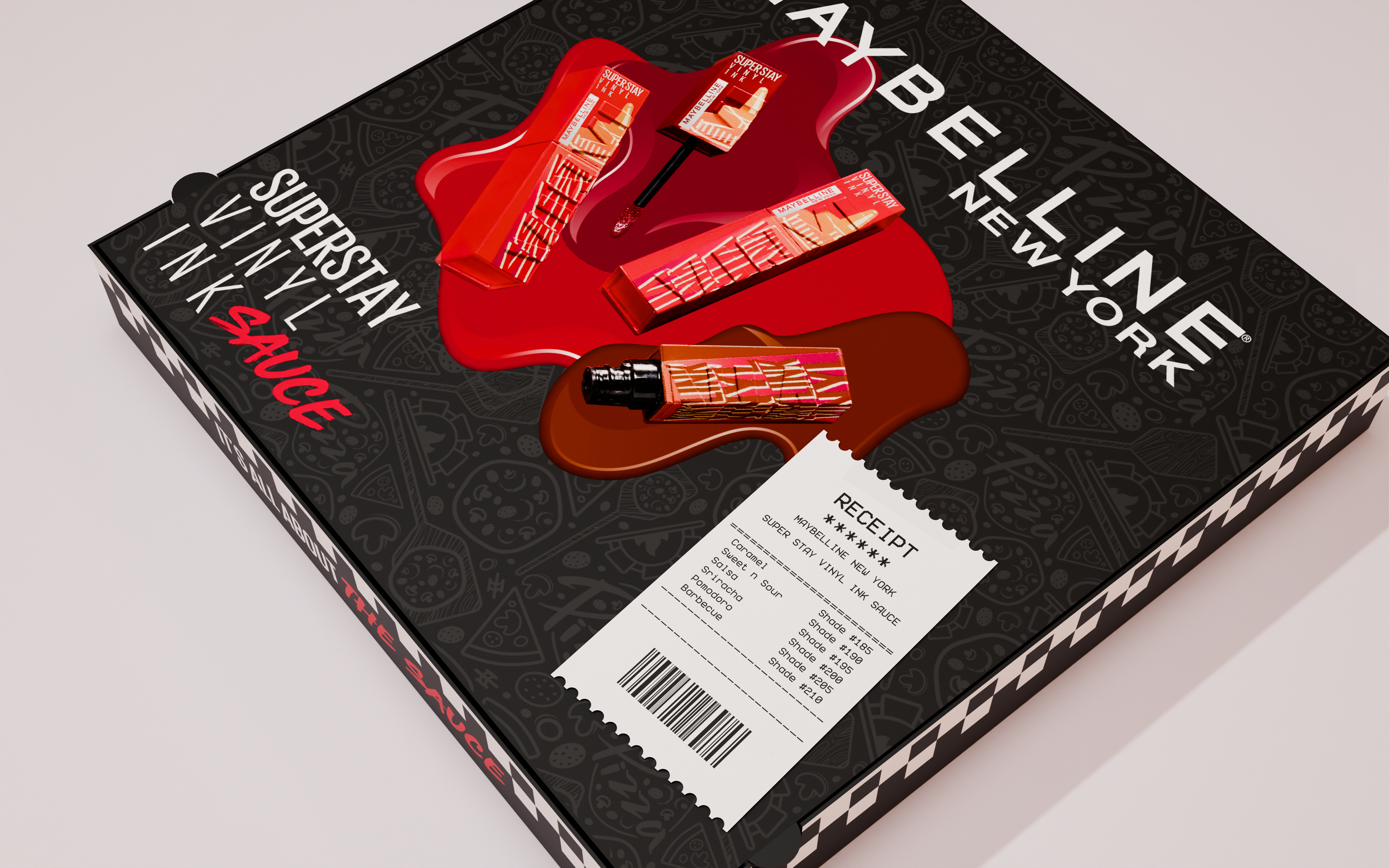 For Vinyl Ink Sauce, Maybelline serves up bold color in the most unexpected way, with a PR box designed like a pizza delivery.