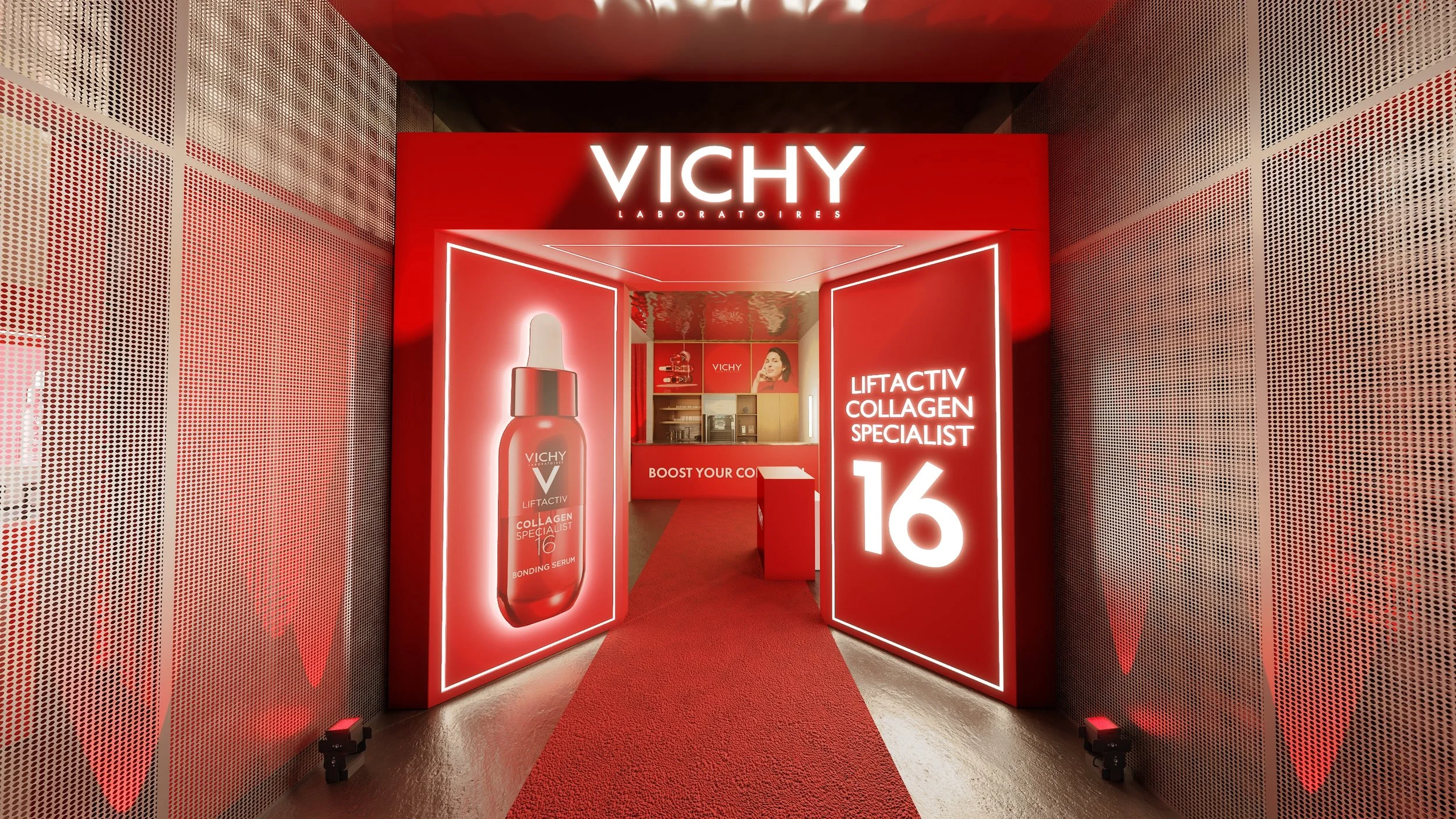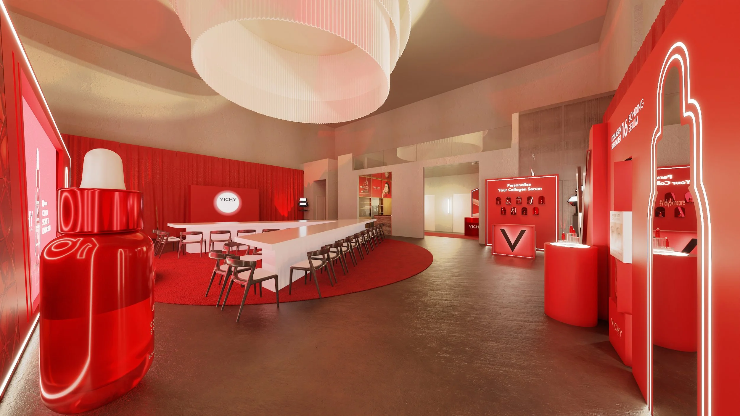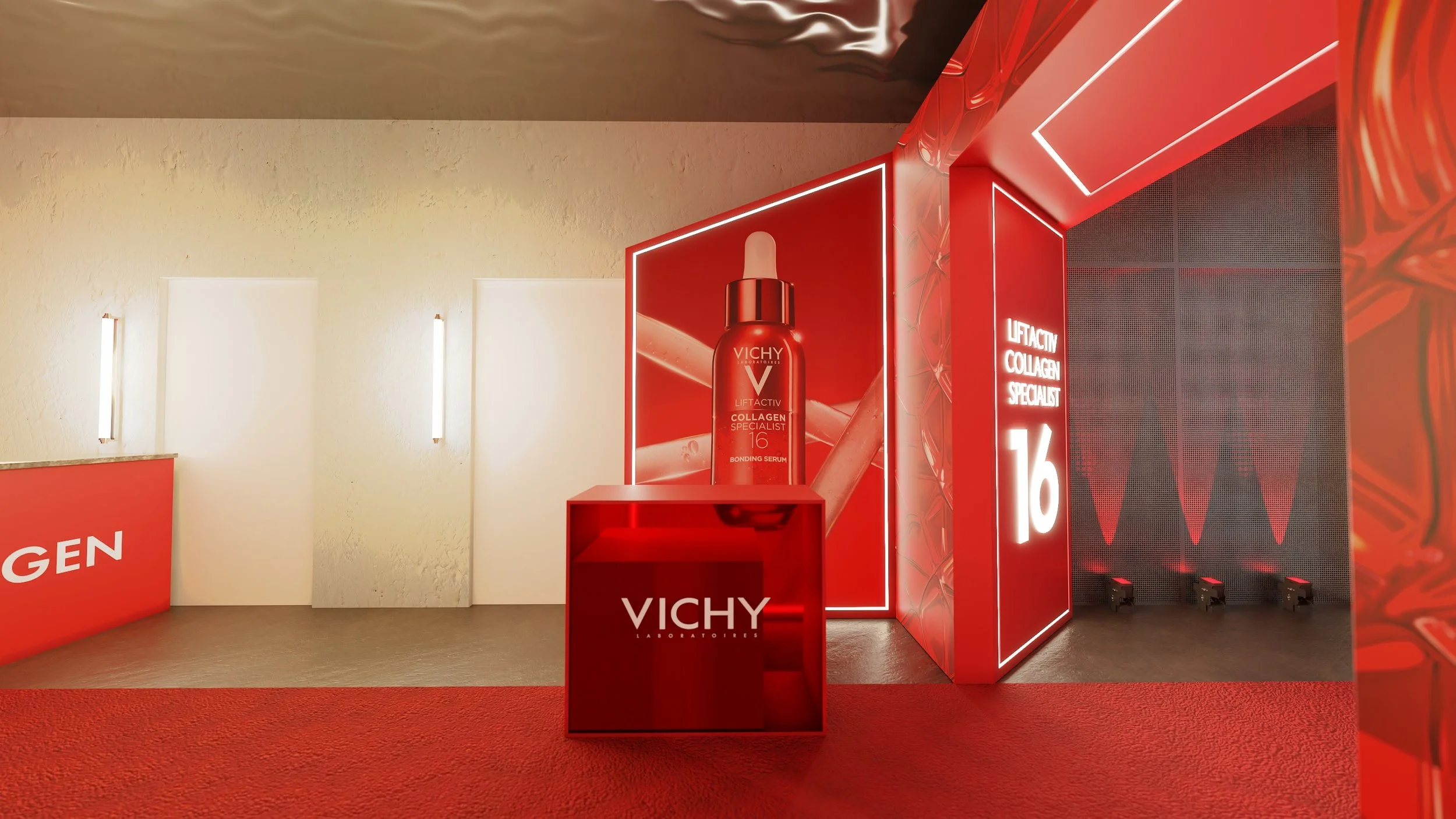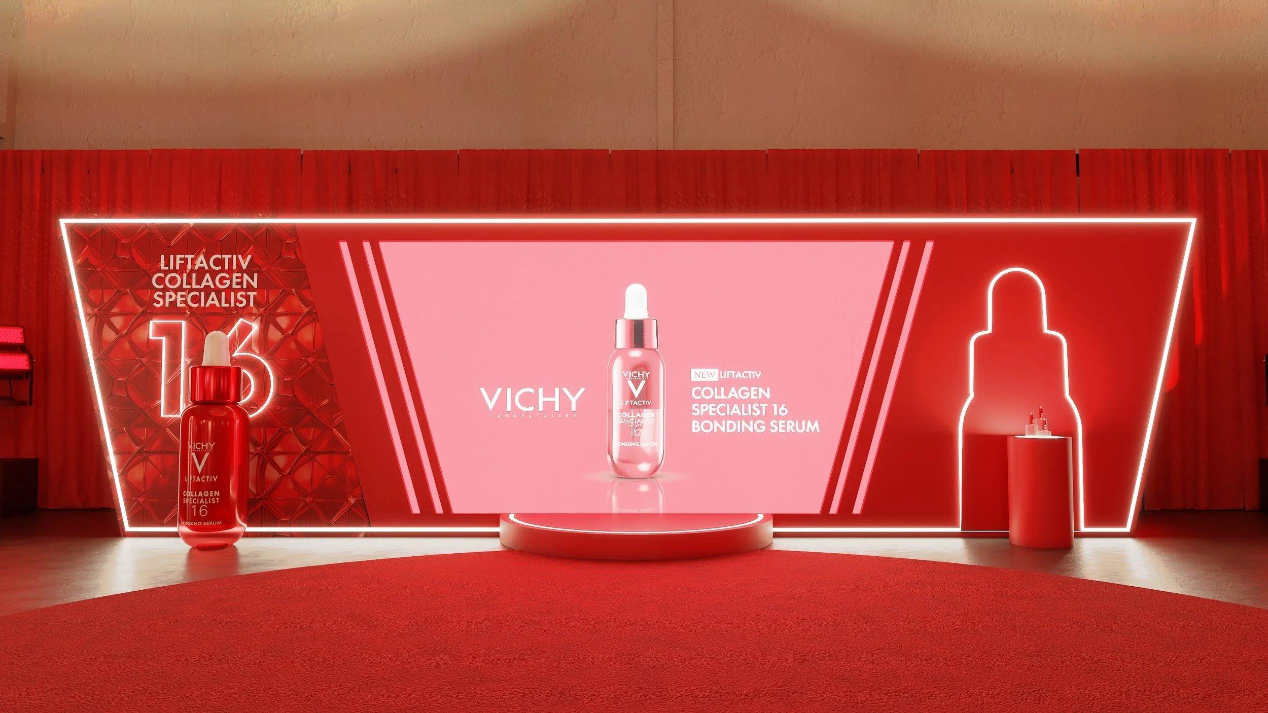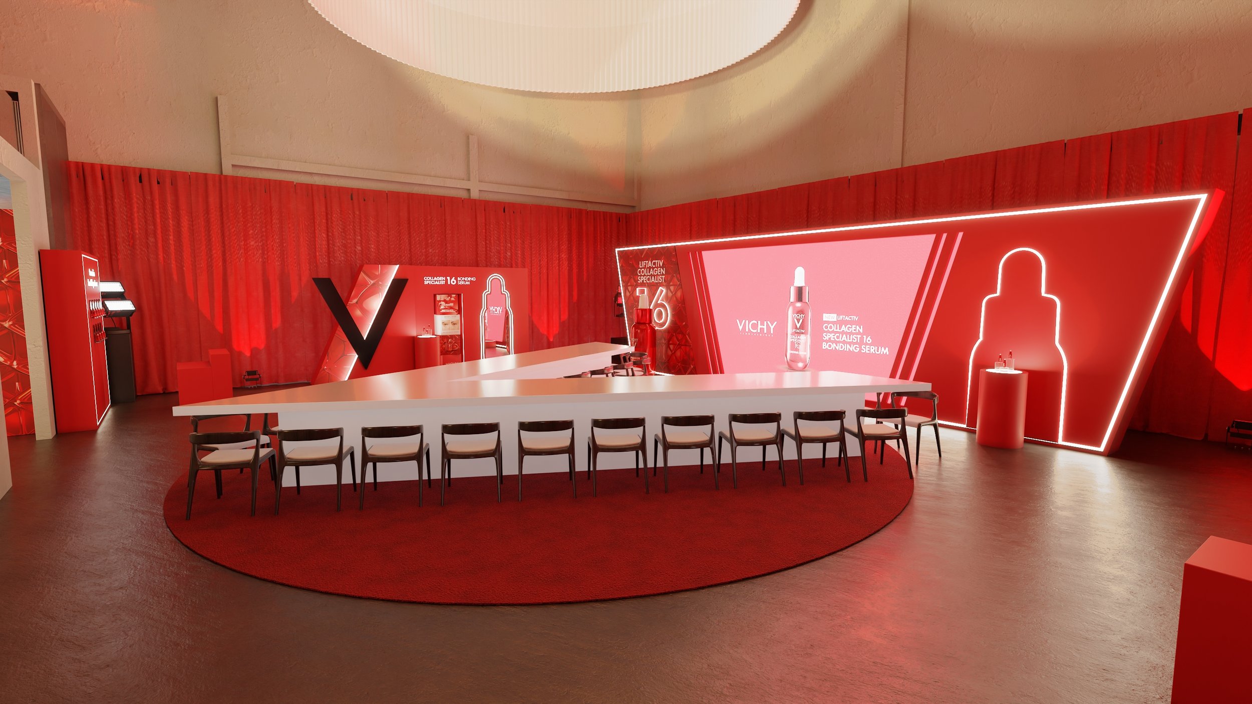 An exclusive fine dining dinner is set up to introduce Vichy’s Liftactiv Collagen Specialist 16, blending elegance, science, and personalization in one experience. Guests are welcomed into a refined, minimalist setting aligned with the product’s color cues, with personalized name elements at each seat. Throughout the multi course menu, subtle activations are integrated, a collagen inspired centerpiece reveal, and a small interactive station where attendees customize their serum bottle. The evening highlights the product’s benefits in a polished, elevated way while making every guest feel individually catered to.